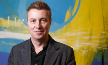 Artist Neil Canning in front of oil painting ‘Sperys Dasserhy’.
