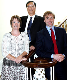 Professor Debra Myhill, Professor Tang Mingjian, and Dr Shaun Curtis. Photo by John Ffoulkes.