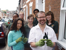 Weeding Blitz student volunteer team with Cllr Kevin Mitchell, Exeter City Council