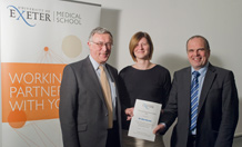 Dr Harney’s prize was awarded from the fund set up in memory of Ken MacLeod, a consultant physician (Diabetes & Endocrinology) at the Royal Devon and Exeter Hospital, who died in 2009, aged just 47. He was the Exeter Locality Associate Dean, Director of Clinical Studies and Reader in Medicine at the Peninsula College of Medicine and Dentistry, which has become the University of Exeter Medical School and the Plymouth University Peninsula School for Medicine and Dentistry. He was instrumental in setting up the Medical School in Exeter, and he envisaged and initiated the development of a new research, innovation and learning centre which has subsequently taken shape as a £25M building funded by the NHS, PCMD, University of Exeter and the Wellcome Wolfson Partnership. This will house a large research, postgraduate and clinical skills facility.