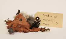 Exploring Cornish dialect with Lanivet Primary School. A clay model of a ‘want’ (mole).