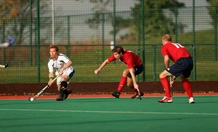Alumnus, Ian Haley playing hockey in his University of Exeter kit.