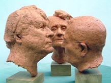 The Environment Triptych (terracotta): portraits of writer Richard Mabey, moral philosopher Mary Midgley and scientist James Lovelock.