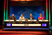 The Exeter team is captained by television producer and director Paul Jackson (English, 1970) and features; award-winning playwright Jessica Swale (Drama, 2004); BBC news correspondent, Jon Kay (Politics, 1992); and statistician and Director of the School of Public Health at Imperial College, Professor Deborah Ashby OBE (Mathematics, 1980). They will be facing Birmingham alumni including comedian Chris Addison and actor Nigel Lindsay.